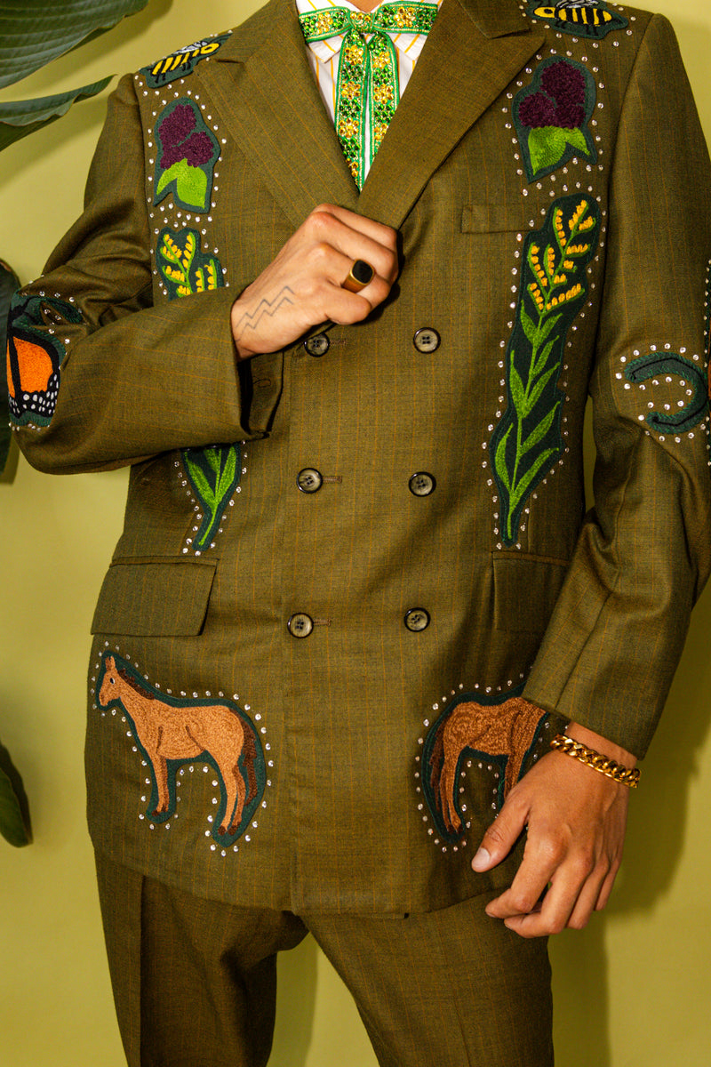 Based in Louisville, KY, we upcycle clothing and accessories into bold, rhinestone-drenched, fringe-flickin’ pieces of wearable art. Whether it’s a reimagined vintage jacket, a statement-making bandana, or a showy accessory for your pup, each design is created with sustainability, queerness, and serious flair at the core.