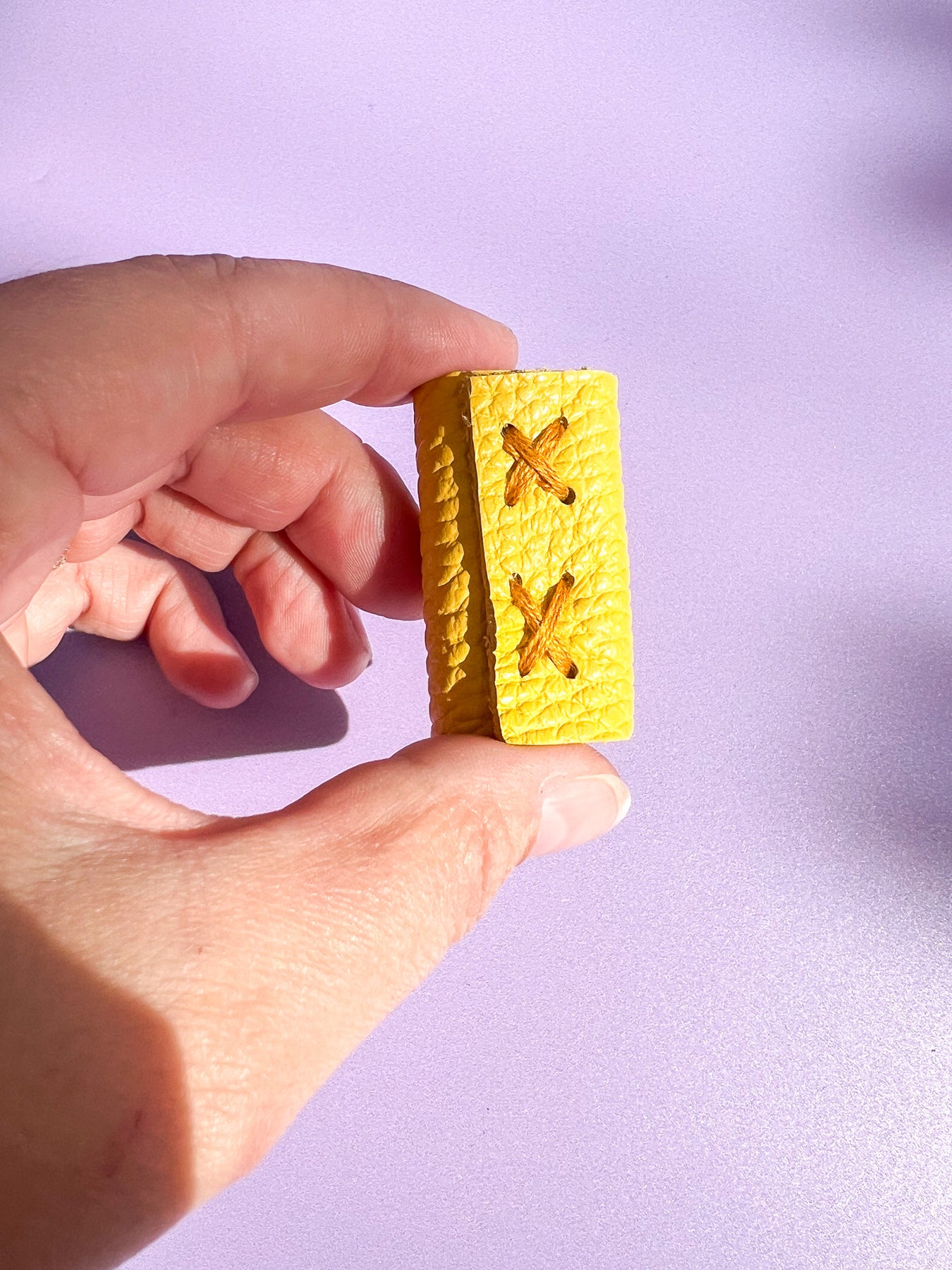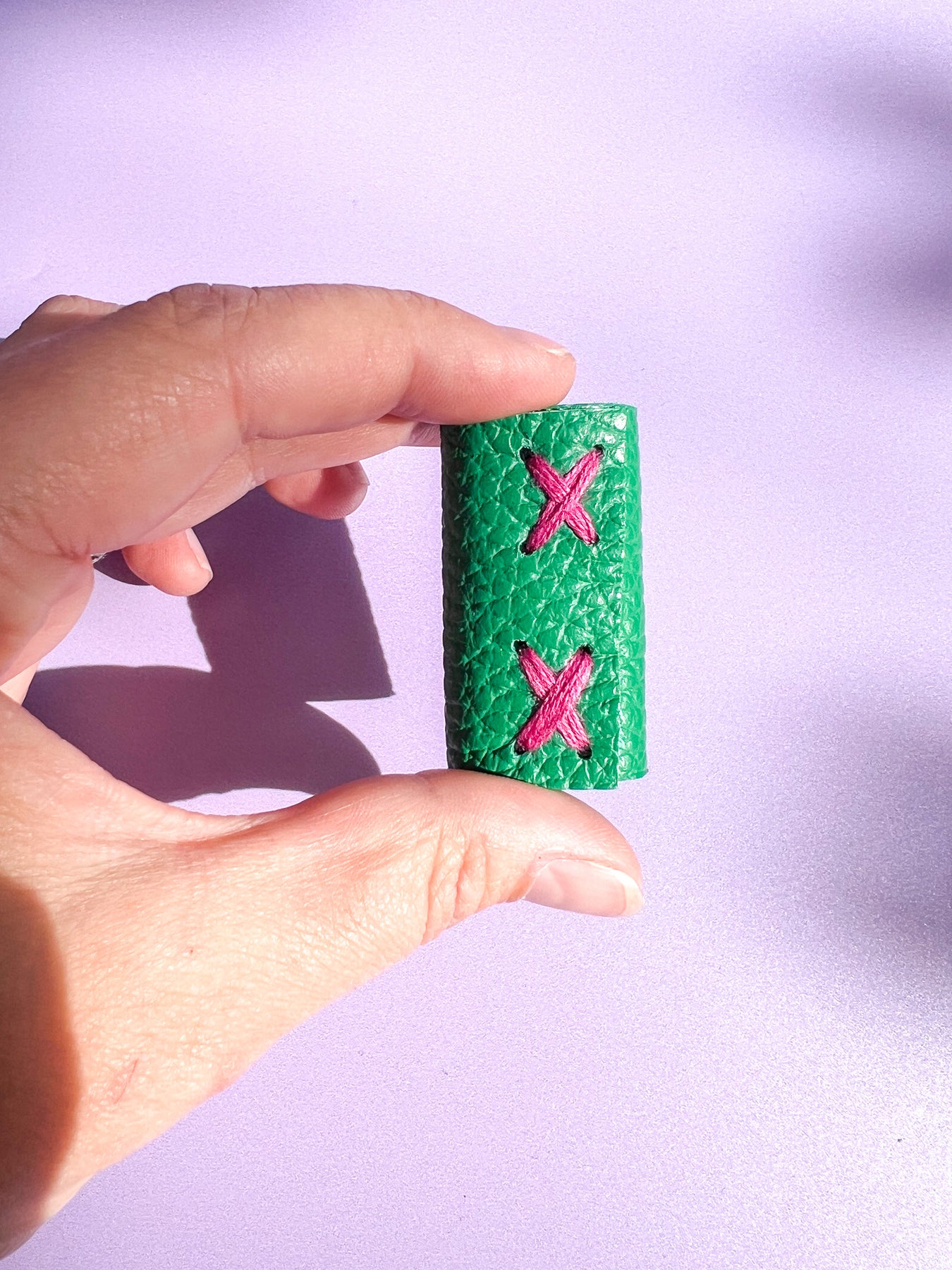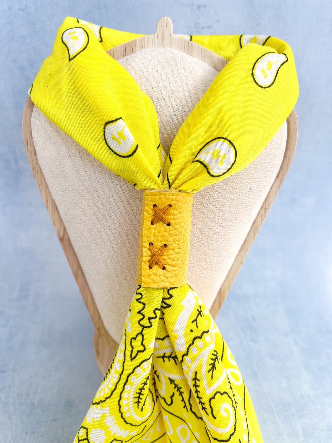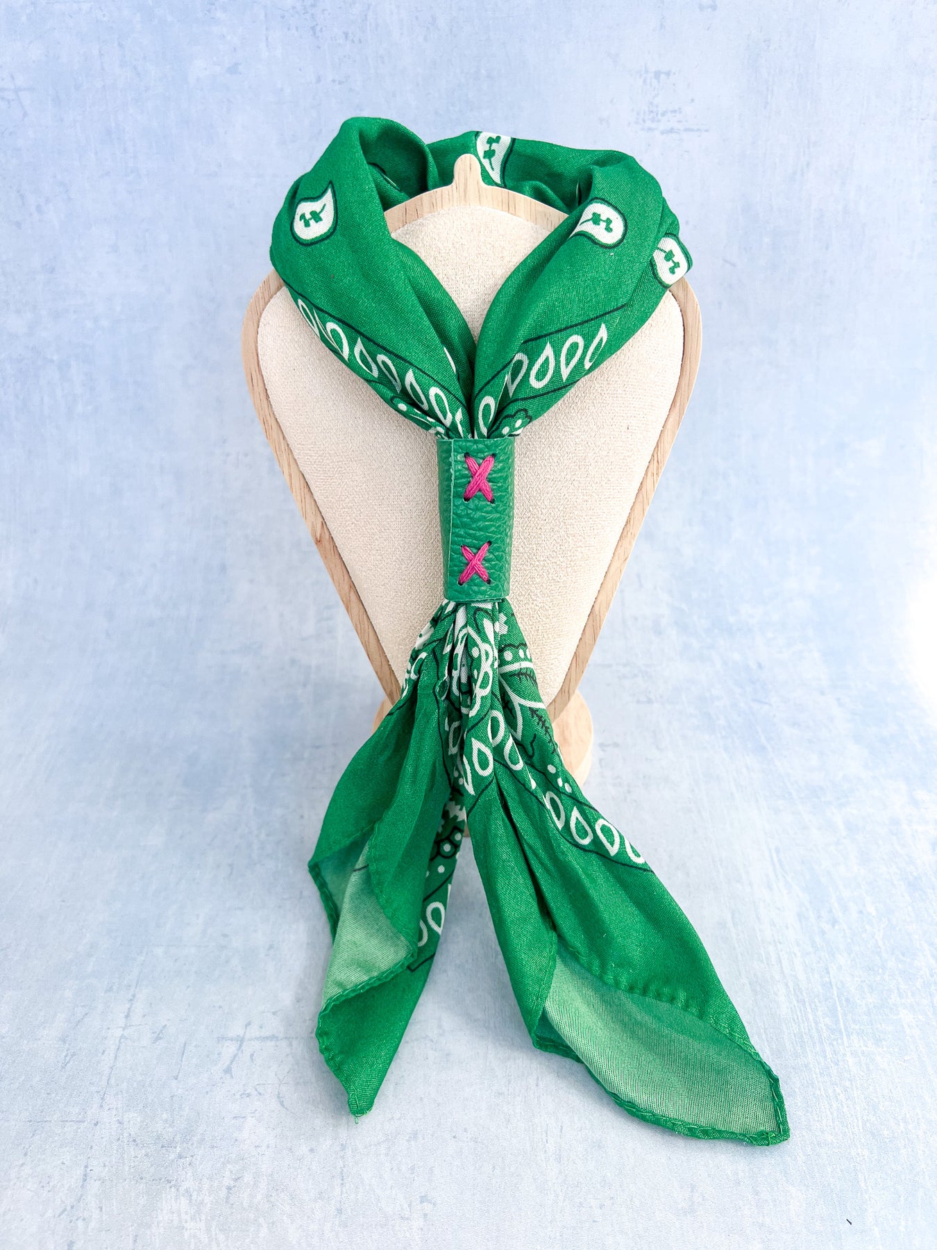 multiple colors of the handmade leather bandana slide. Hand stitched together with durable cotton thread. This is real leather and should not be washed. This listing is for the SLIDE ONLY - bandana is not included.
