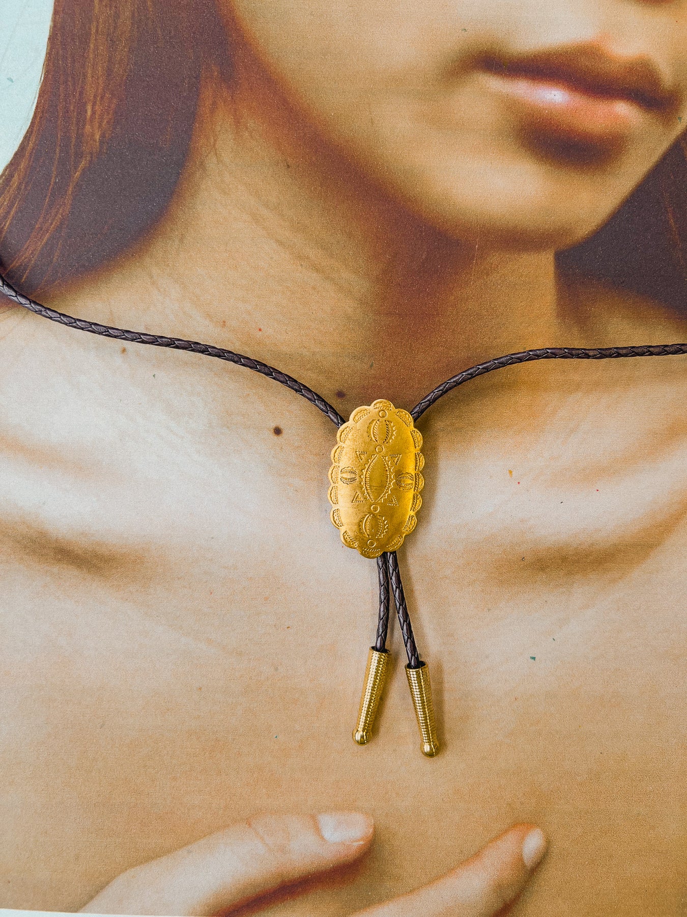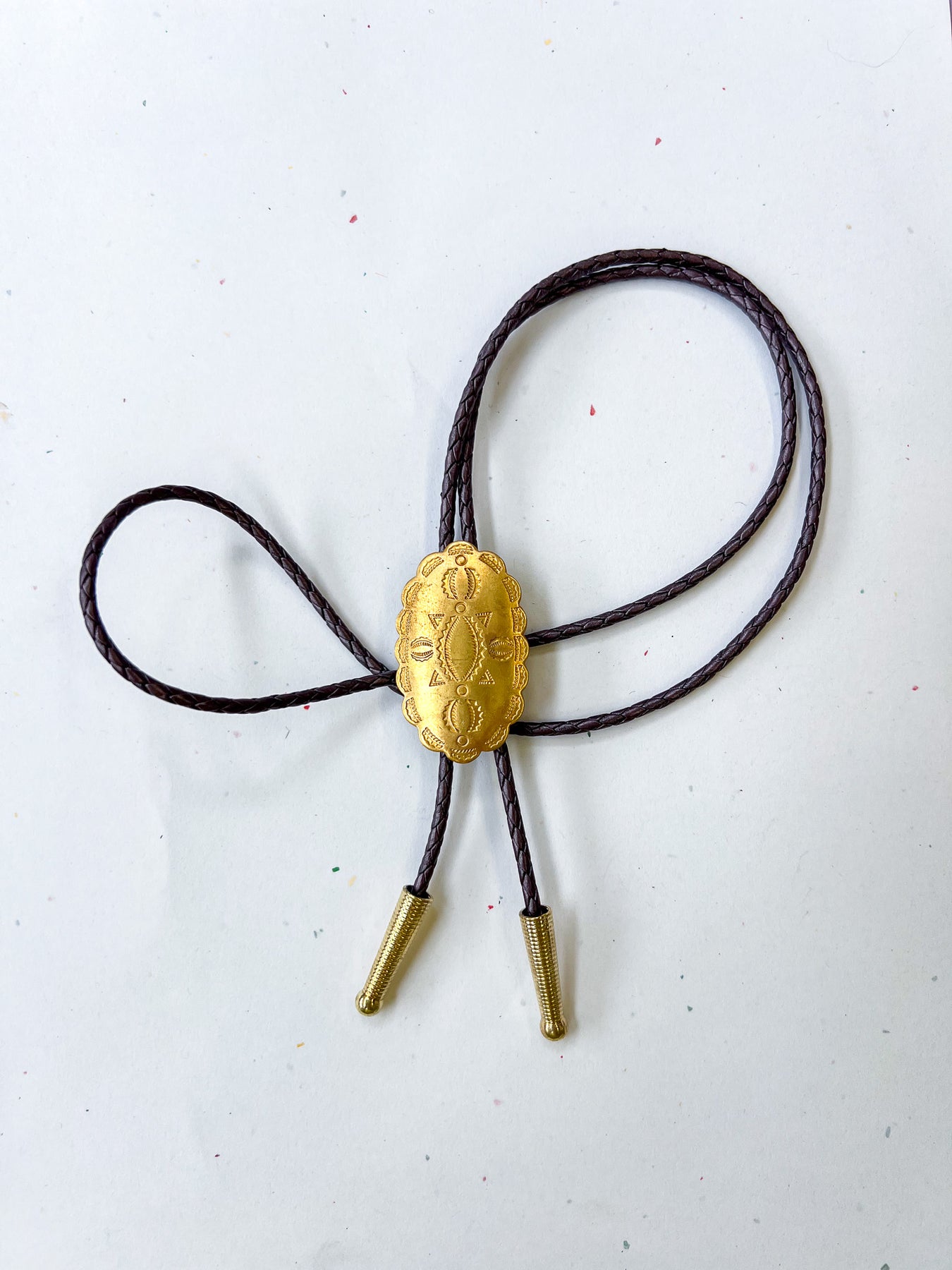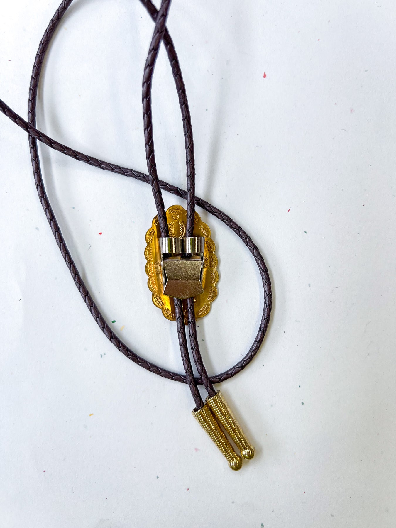 Gold Concho Braided Leather Bolo Tie - Western Neckwear