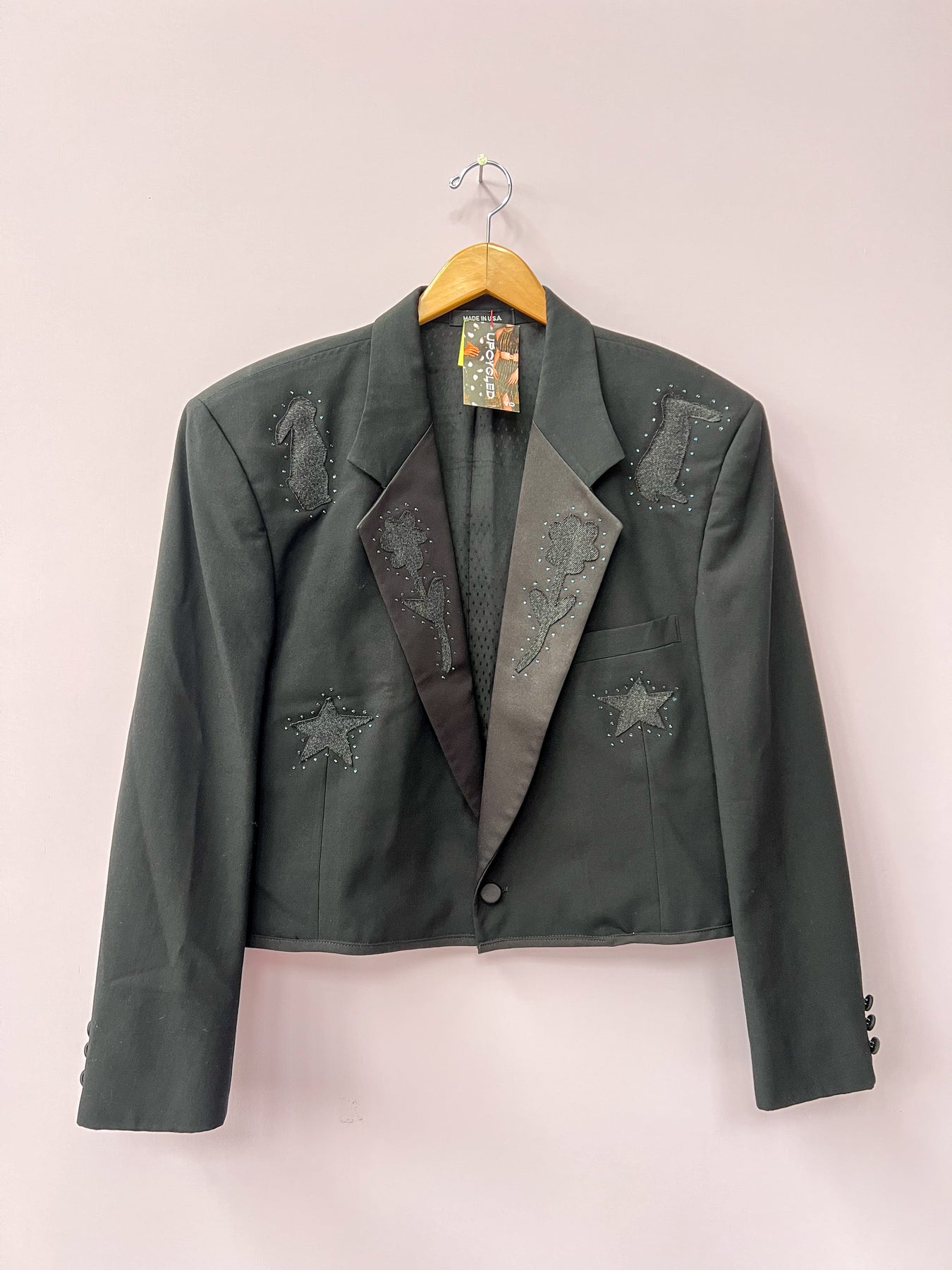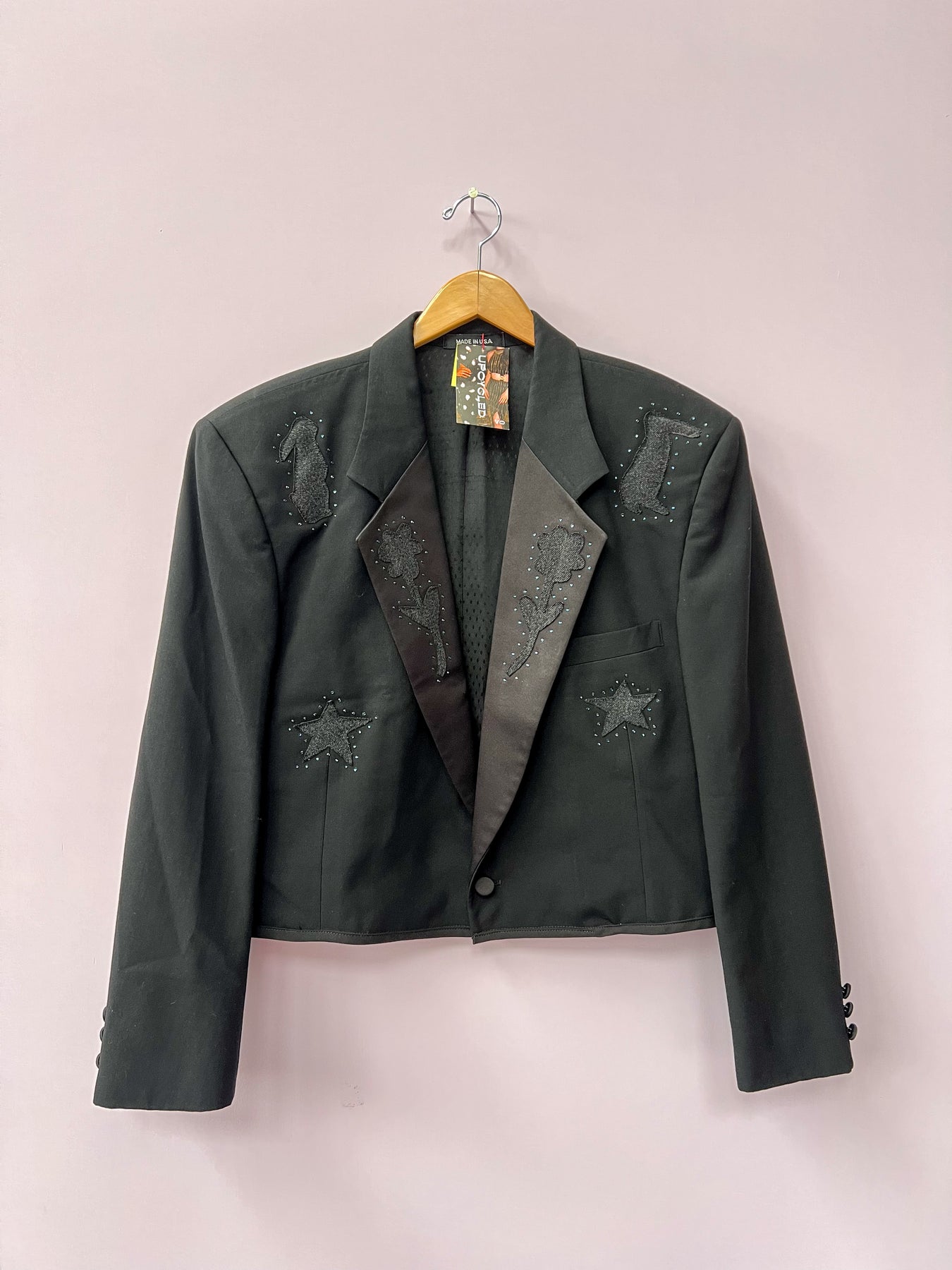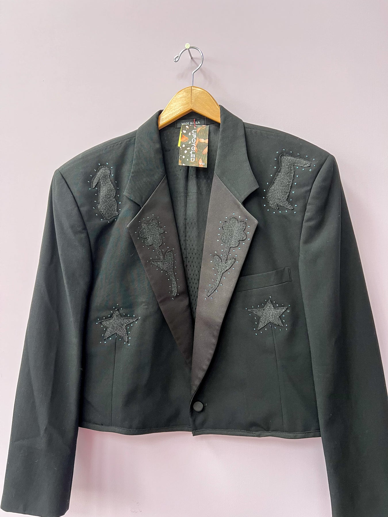 Black Reworked Rhinestone Western Style Tux Jacket L