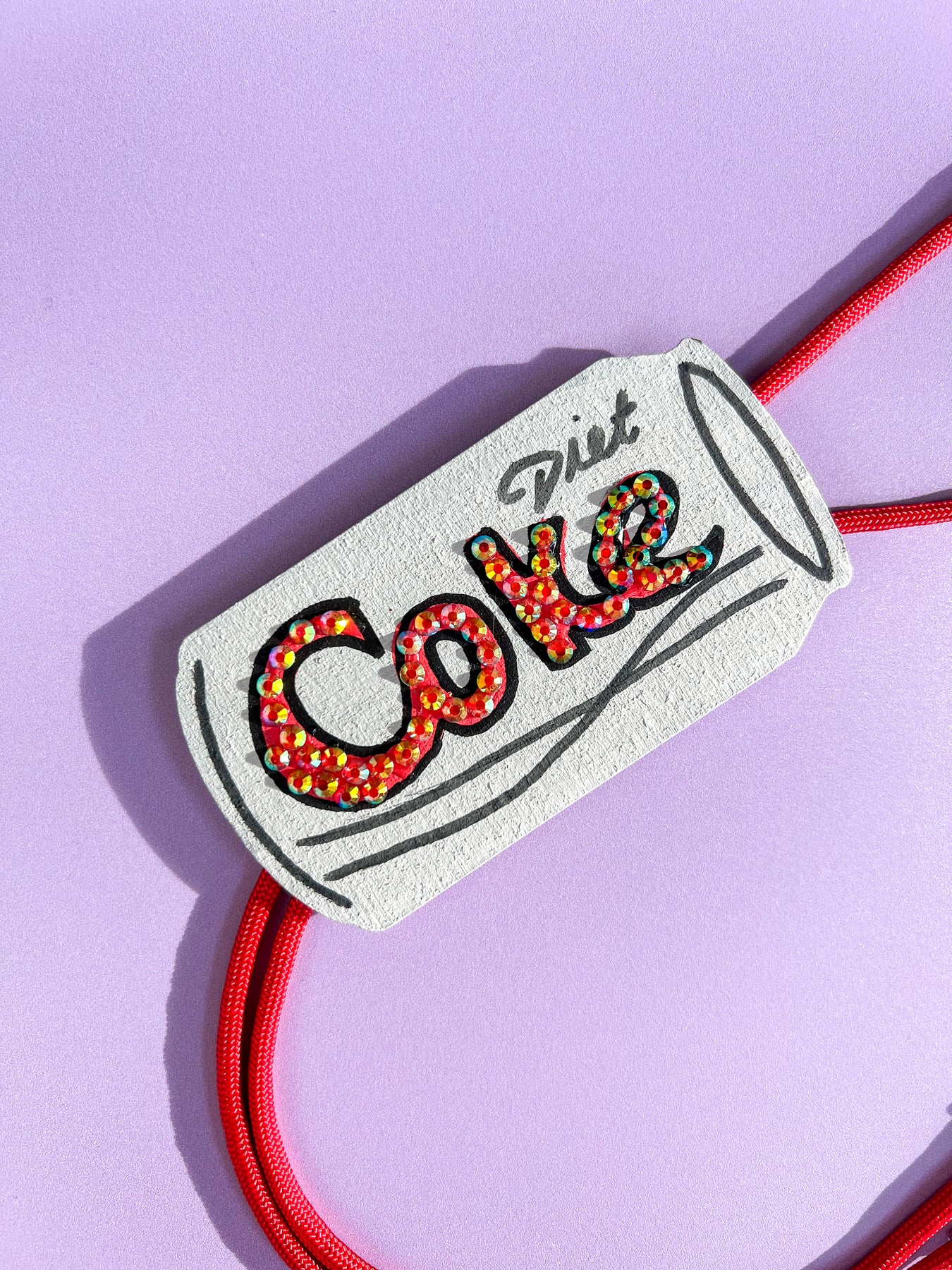 Need an afternoon break? This might not get you that break but it'll sure be a reminder of the diet coke that you love. Two options - one as a bolo tie or the other as a mini bolo (for the maximalist home or review mirror). Or get them both to make sure everyone knows how much you love to treat your self.