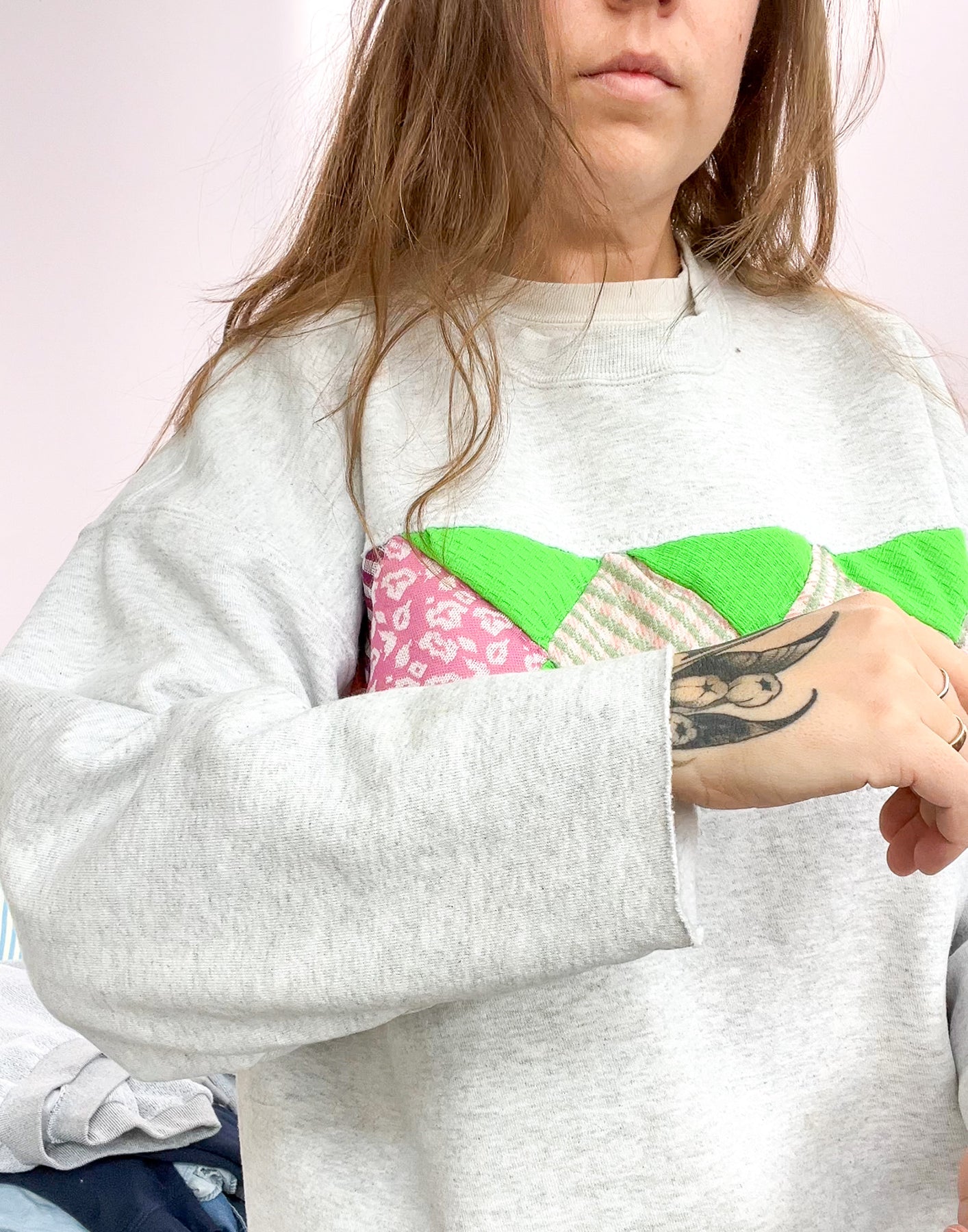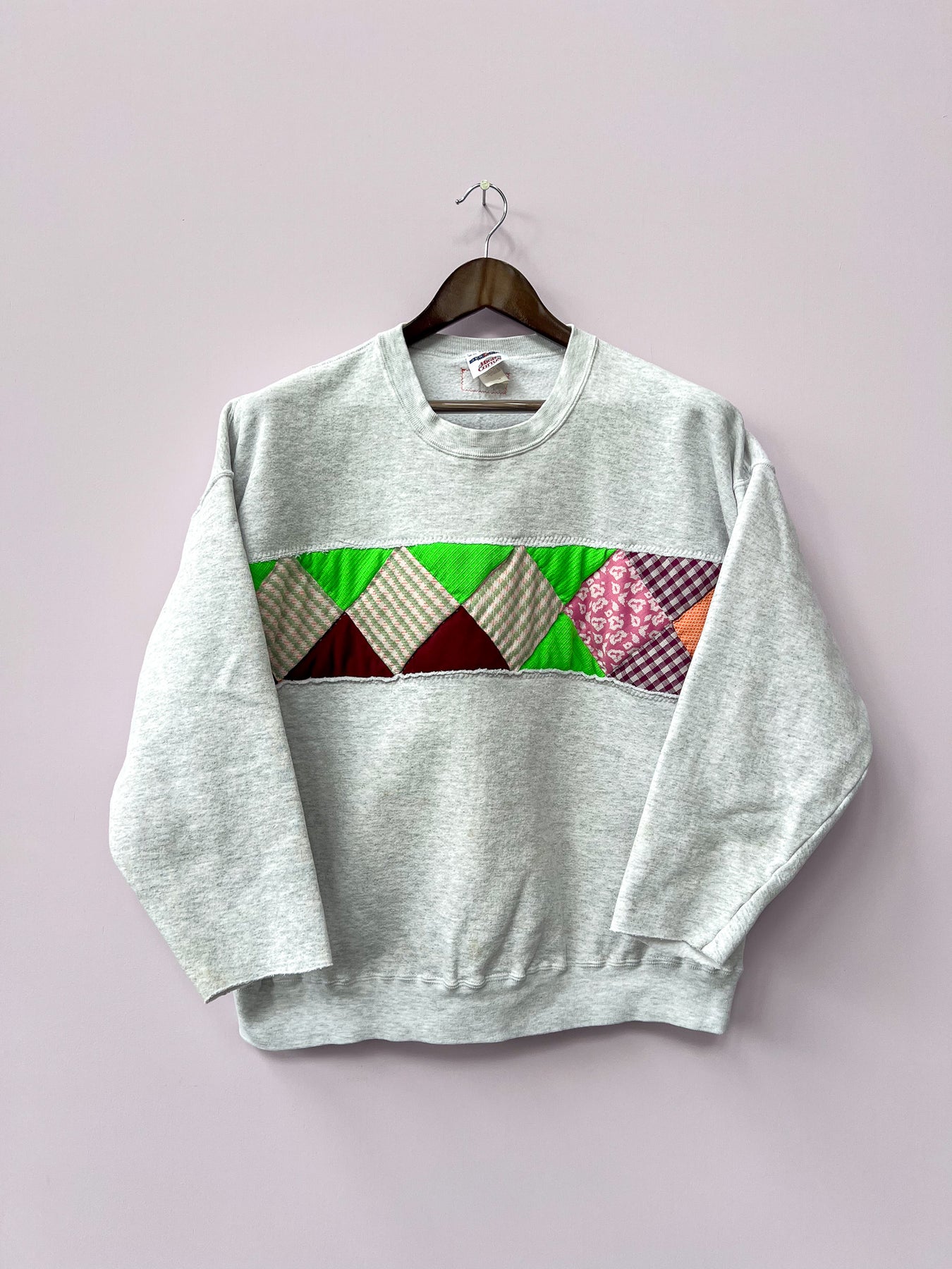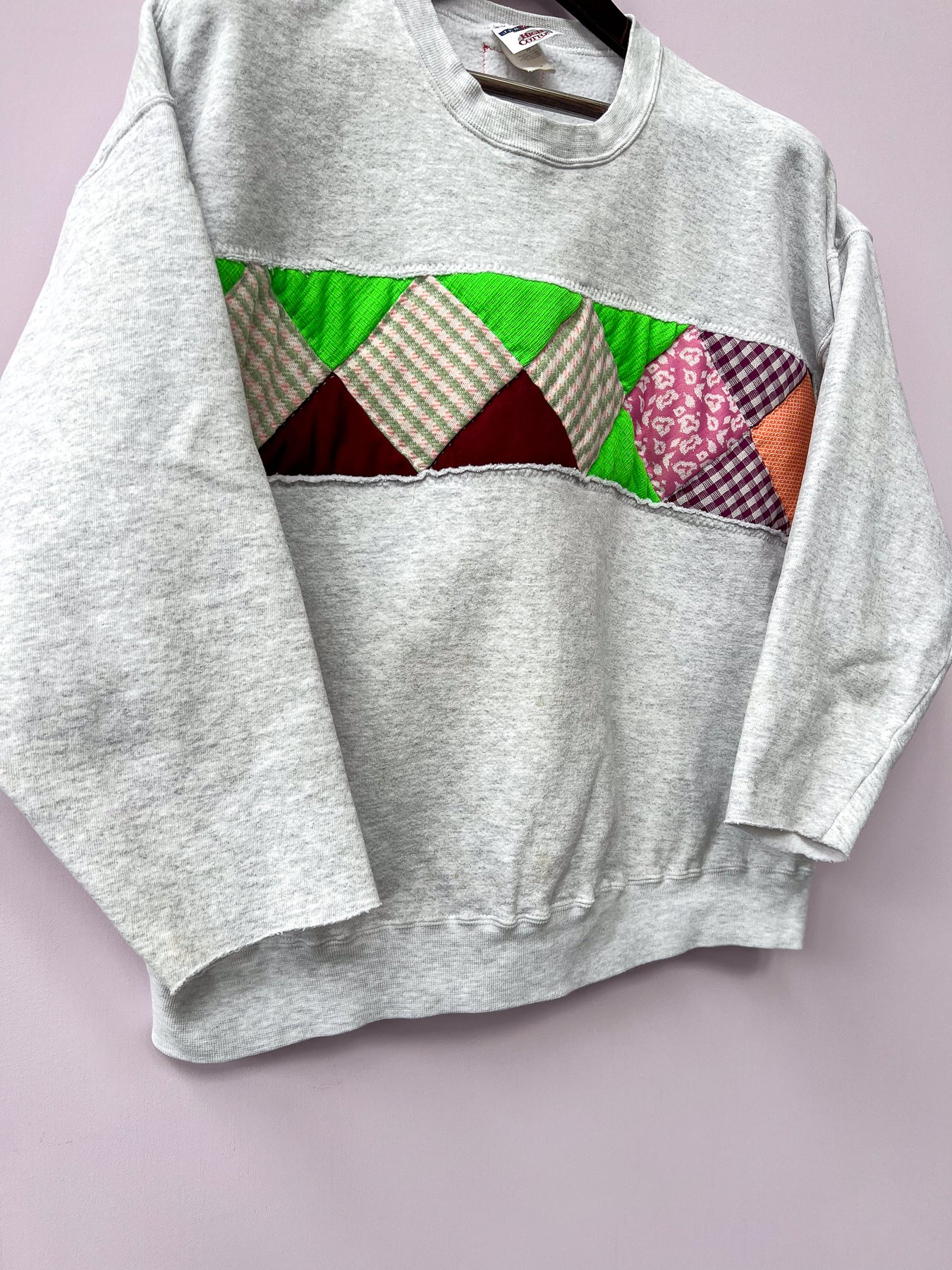 Quilt Patchwork Grey Sweatshirt - Size 2X