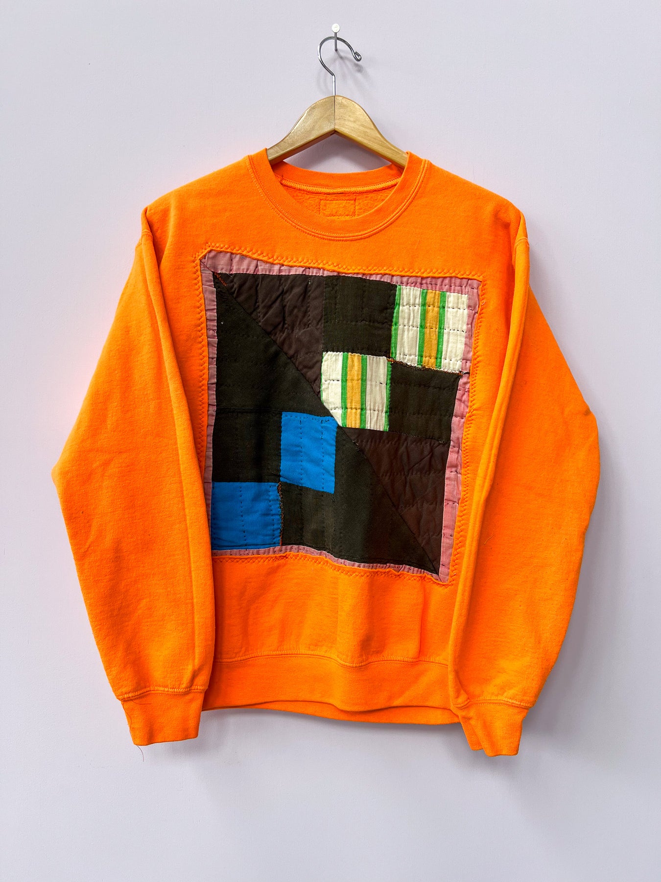 Quilt Patchwork Neon Orange Sweatshirt - Size S/M